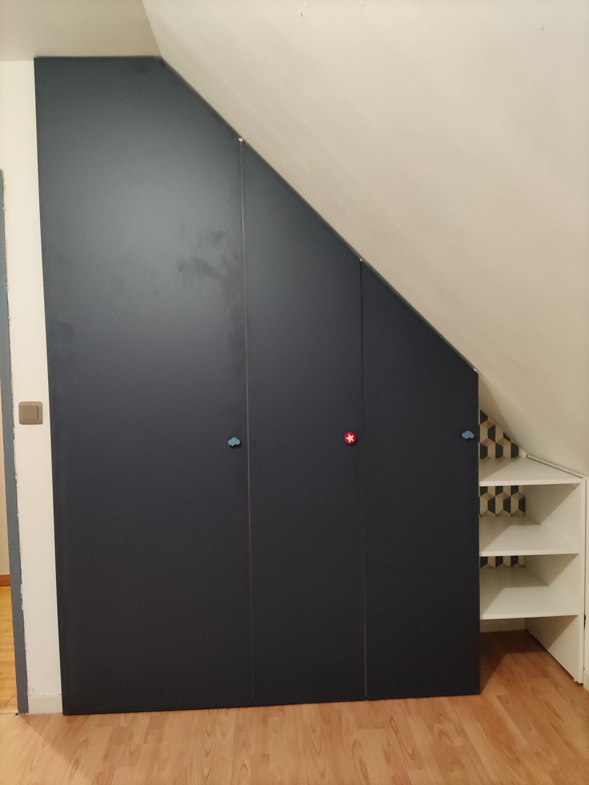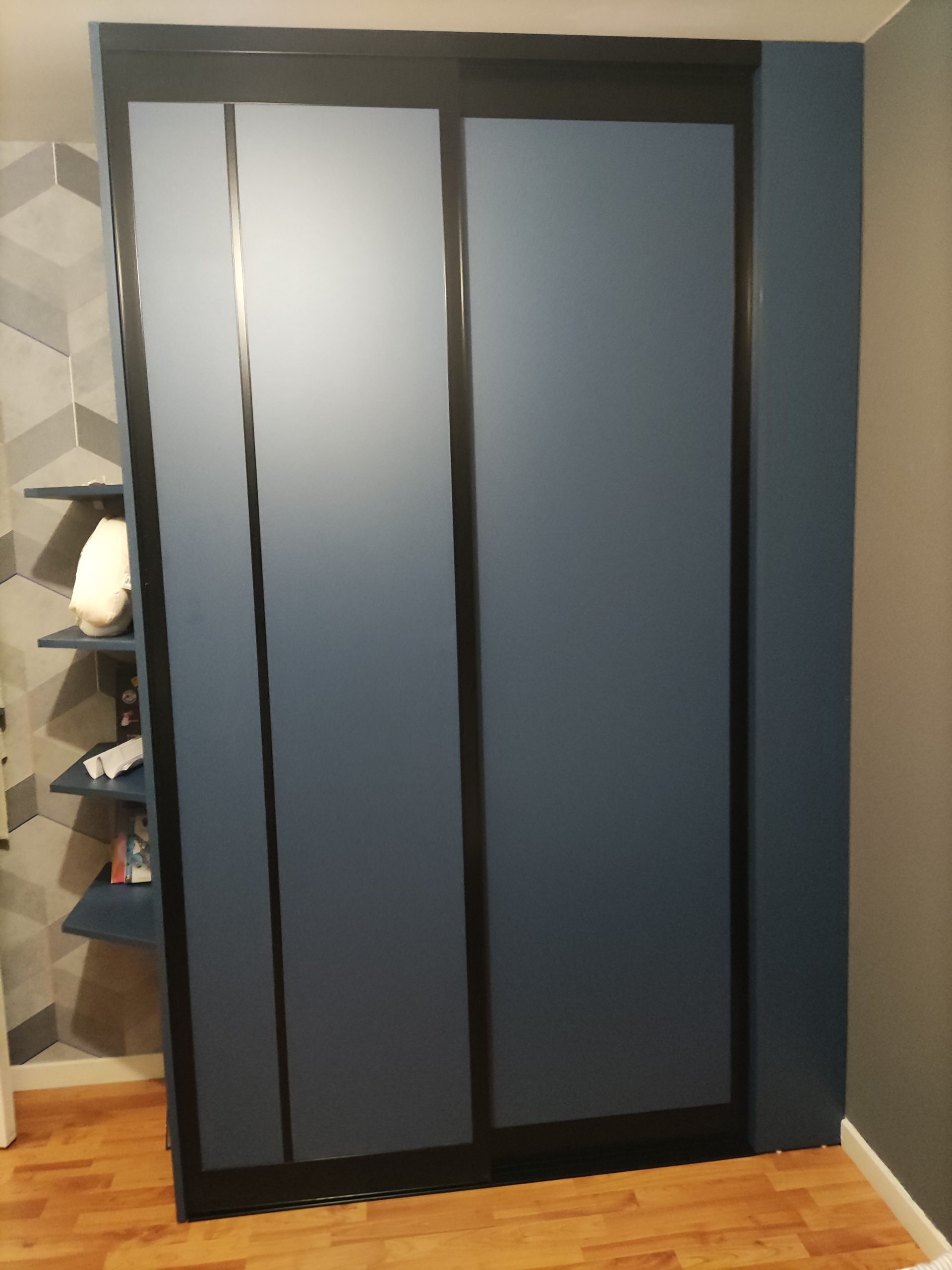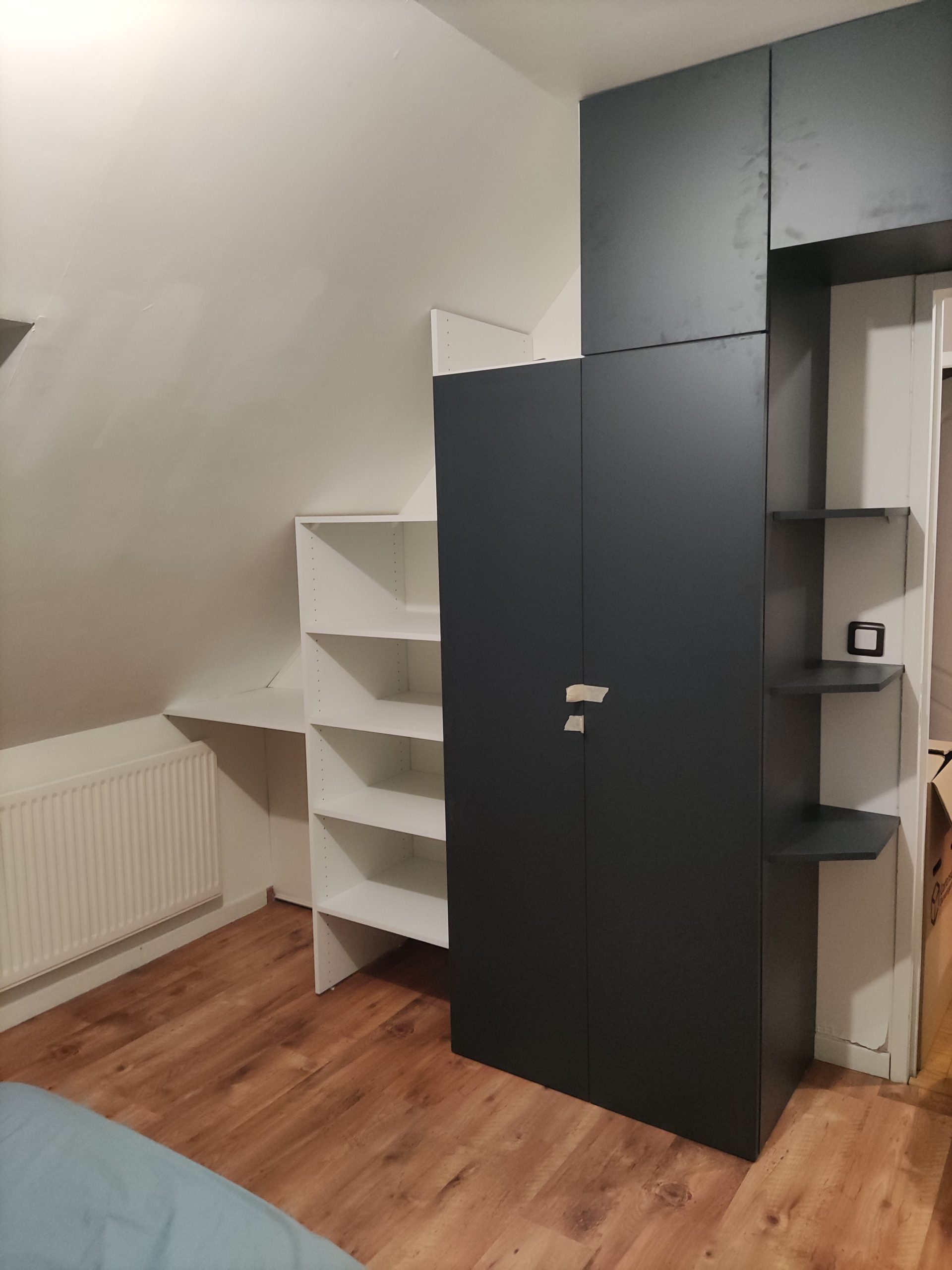 Réalisation de de 2 dressings sous pente ainsi qu’un dressing sur mesure avec portes coulissantes et portes battantes sur mesure .