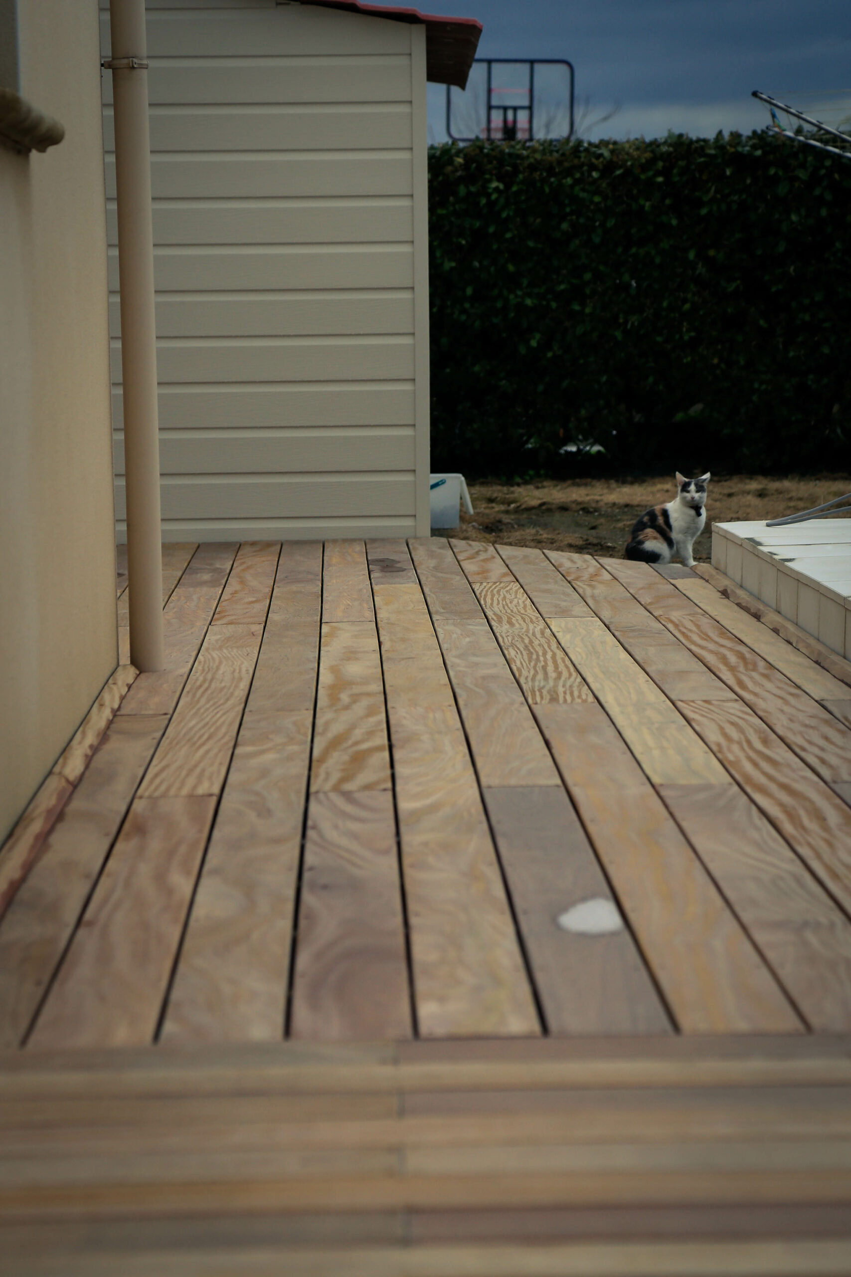 J’ai donc réalisé une ossature en pin traité épousant la forme de cette dalle ainsi que des dalles drainantes sur la surface restante.