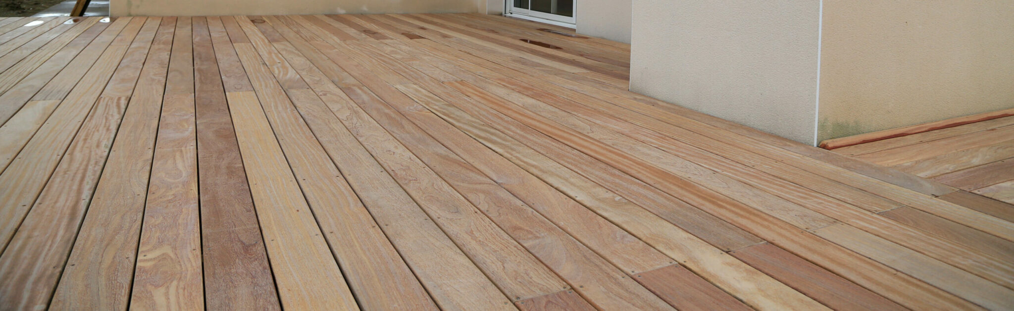 Terrasse sur mesure avec pourtour de piscine réalisée en cumaru.