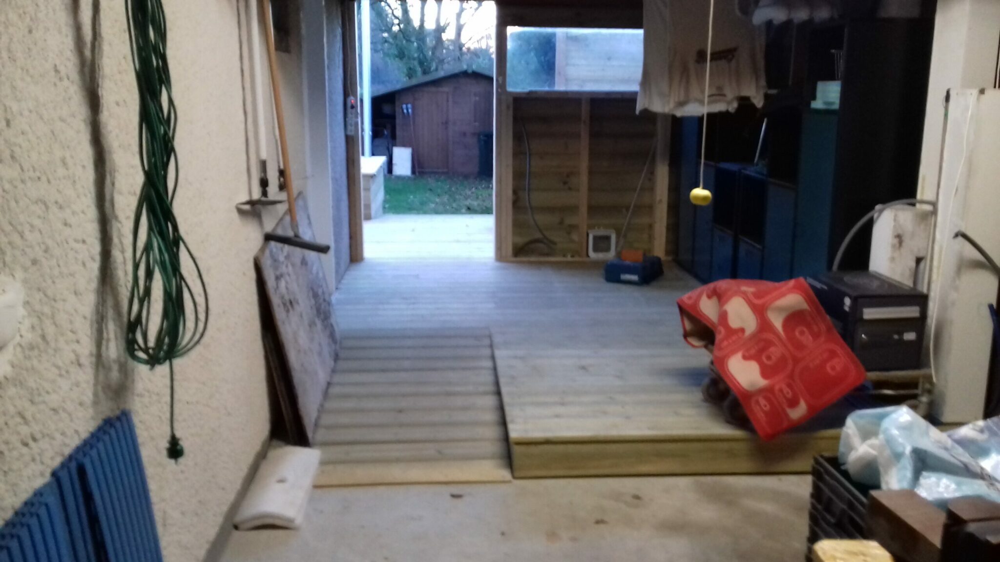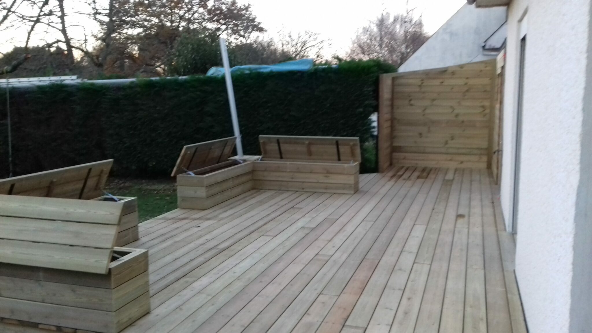 Réalisation d’aménagements de jardin en pin traité sue la commune du Temple de Bretagne au nord de Nantes.