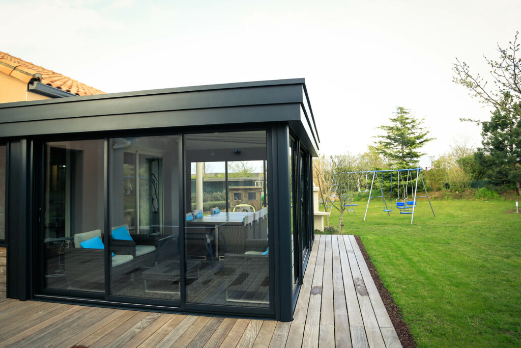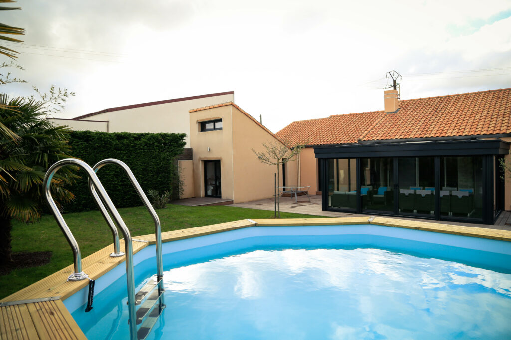 Cette terrasse est auto-portée sur des dalles drainantes, cela permet le démontage intégral de la terrasse si nécessaire.