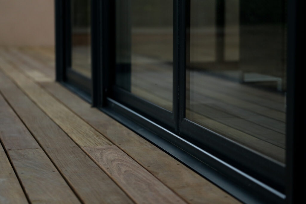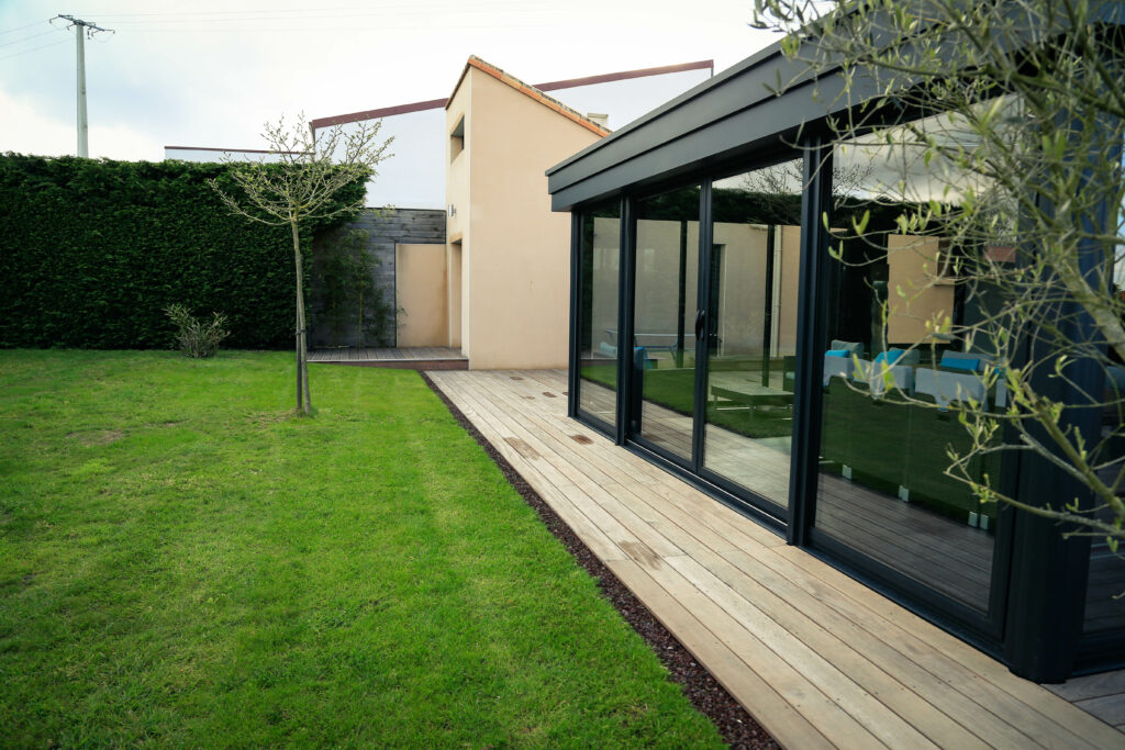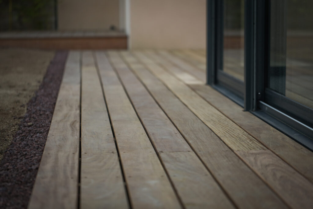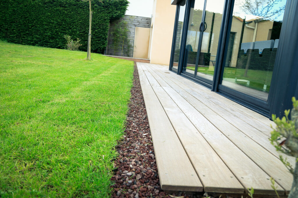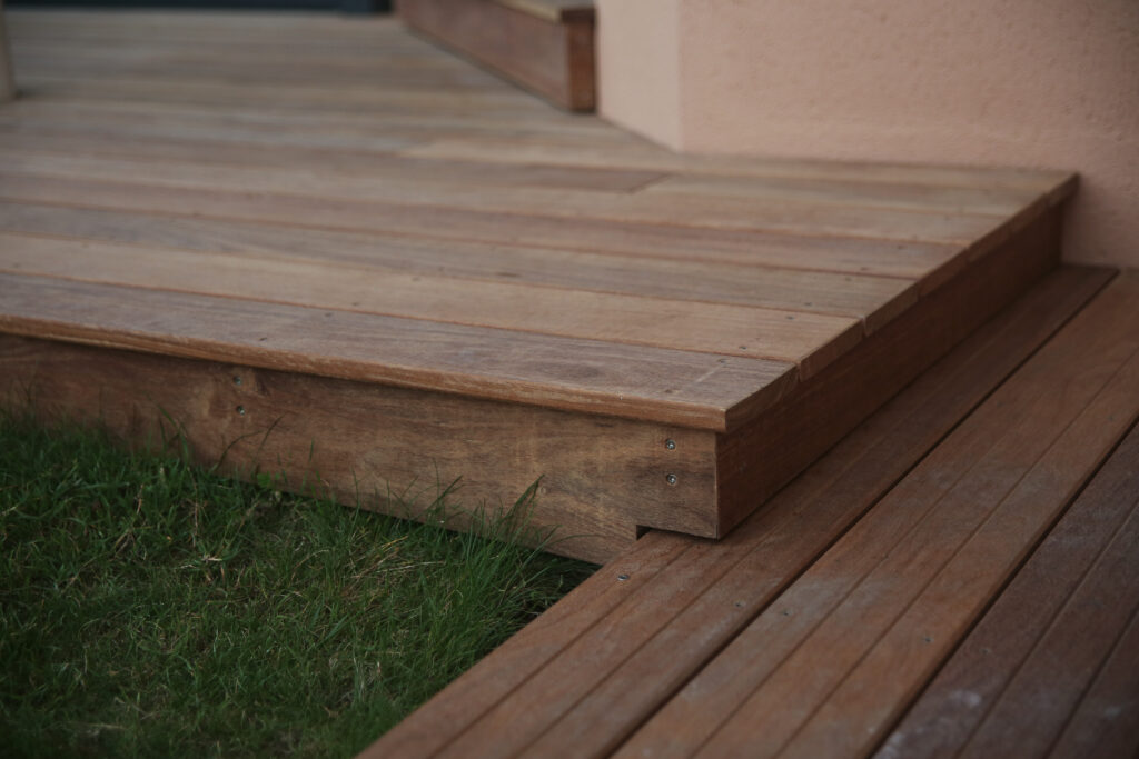 Cette terrasse a été réalisée en bois exotique (cumaru).