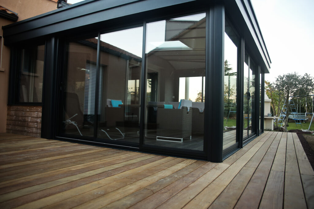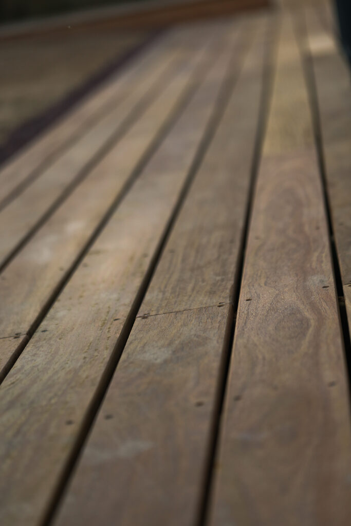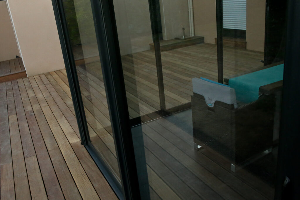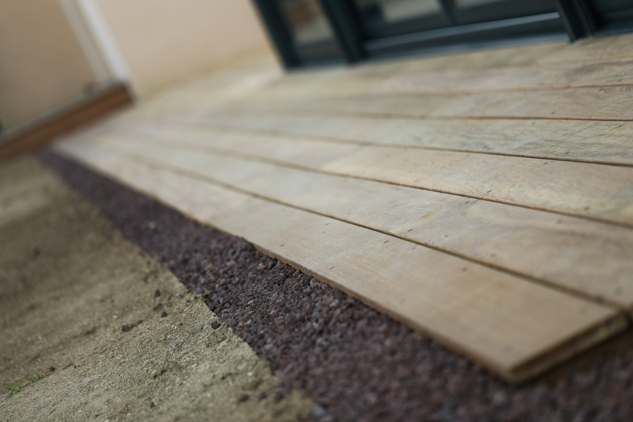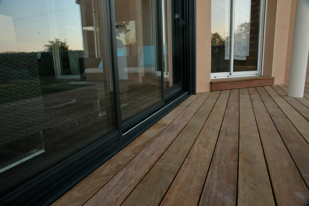 Cette terrasse a été réalisée en bois exotique (cumaru).